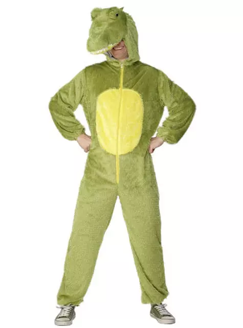 Beinhaltet einen grünen Overall mit dazu passender Kaputze in Form eines Krokodils.