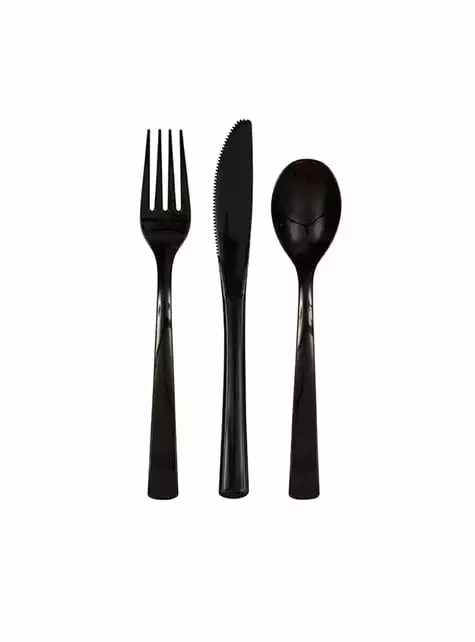 Lieferumfang: 6 Plastikgabeln, 6 Plastikmesser, 6 Plastiklöffel